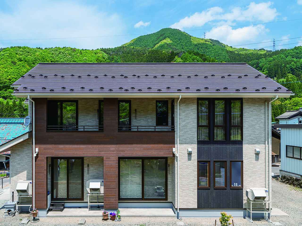 上下階の坪数が等しい、総二階型の大きな家。3色トーンをまとめたデザインは、モデルハウスにヒントを得ました。